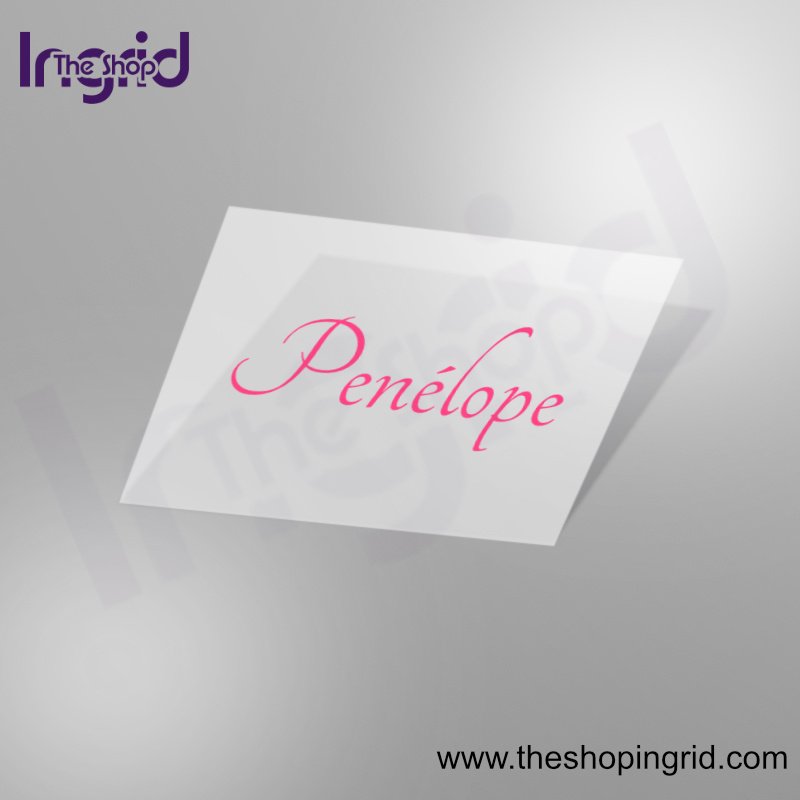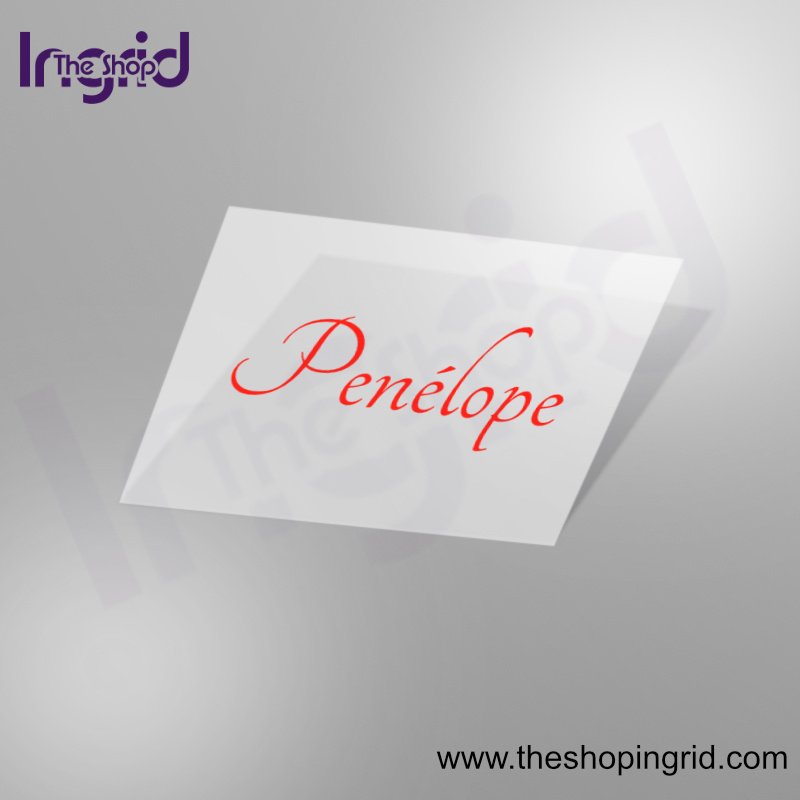 El nombre Penélope, representado con un diseño caligráfico elegante y fluido, aporta una estética moderna que puede integrarse fácilmente en numerosos proyectos creativos.