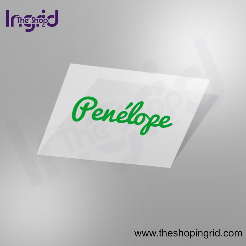 Esta pegatina es ideal para quienes desean decorar o personalizar objetos con el nombre Penélope, creando un detalle único y original.